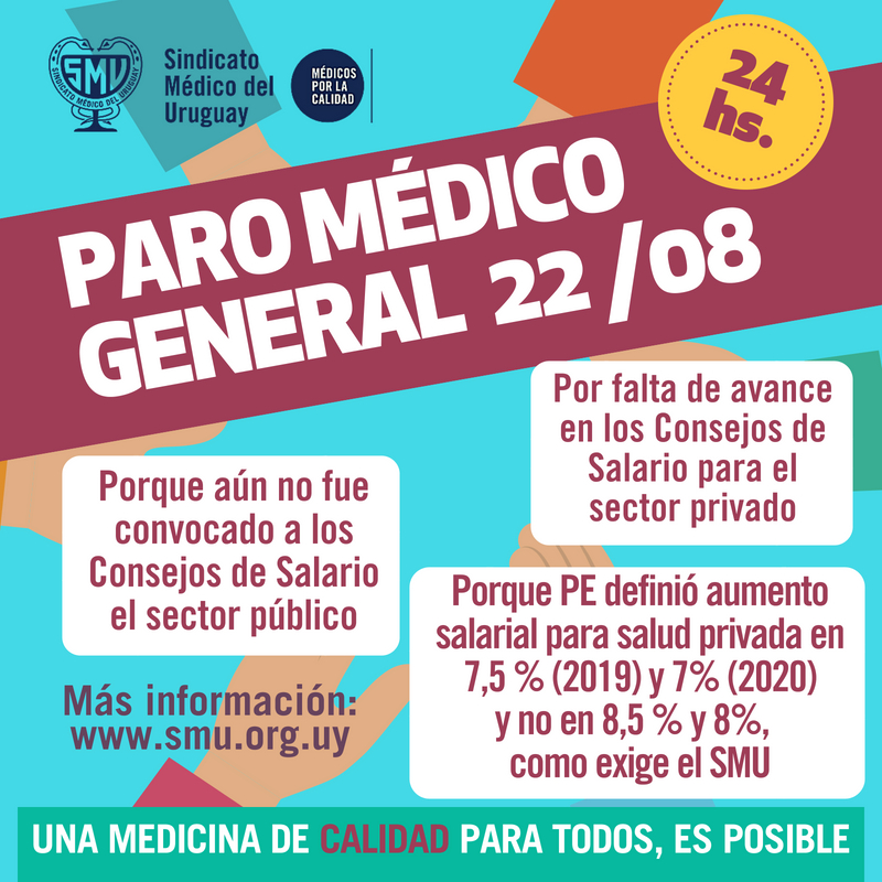 Compartimos con los socios del SMU el protocolo de paro para el sector público y privado, como así también las planillas gremiales, de cara a la medida de fuerza a desarrollarse por 24 horas el próximo miércoles 22 de agosto.
