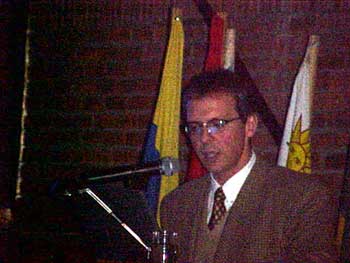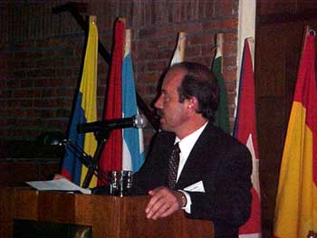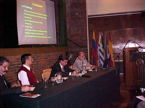 Expone Juan Carlos TEALDI, en la mesa: María del Carmen CURBELO, Horacio CASSINELLI MUÑOZ.