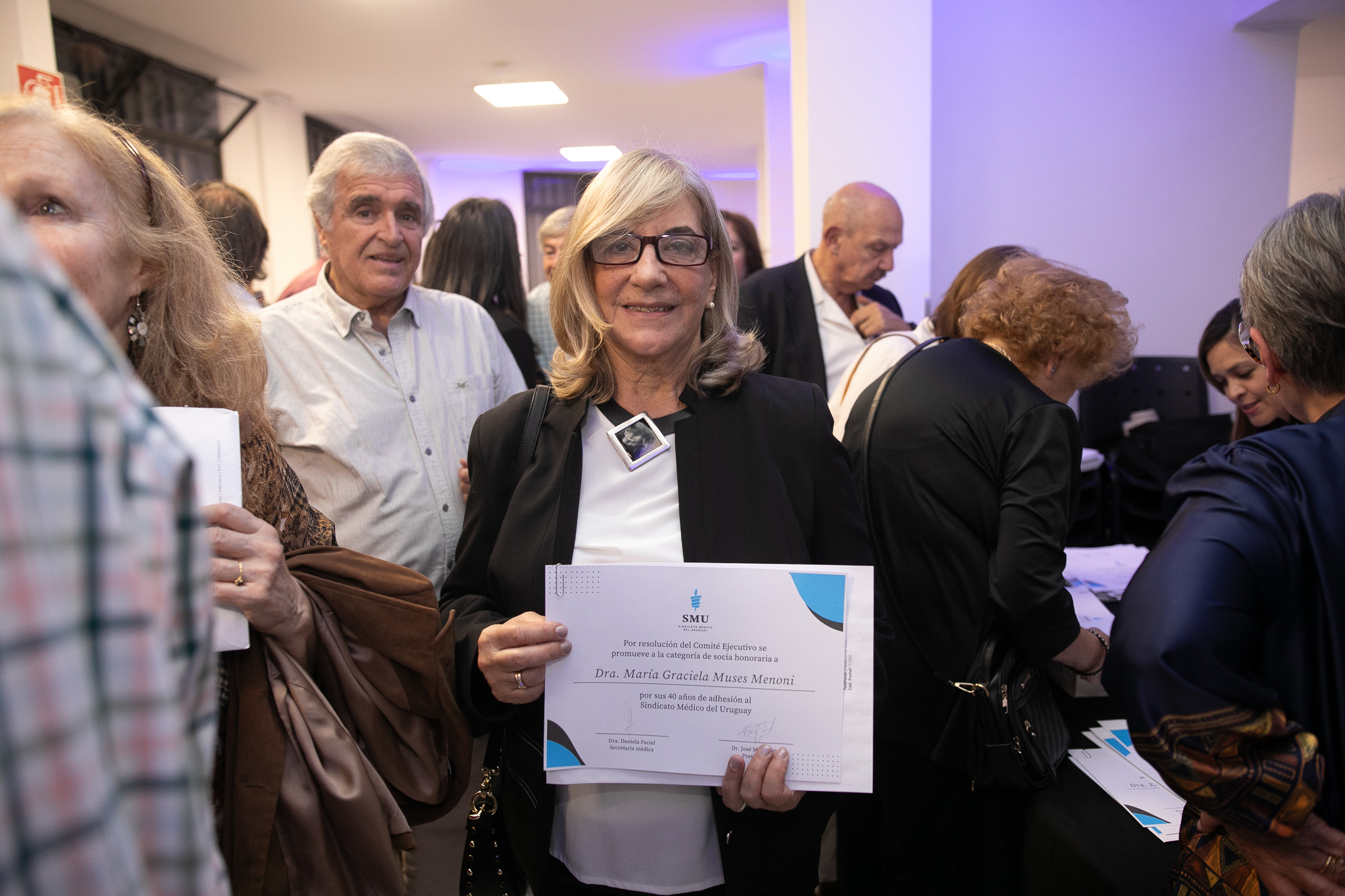 Se sumó a esta celebración la entrega de los premios de la Revista Médica del Uruguay “Dra. Gloria Ruocco” y se les hizo un reconocimiento a las socias y socios honorarios que cumplieron 40 años de afiliación.