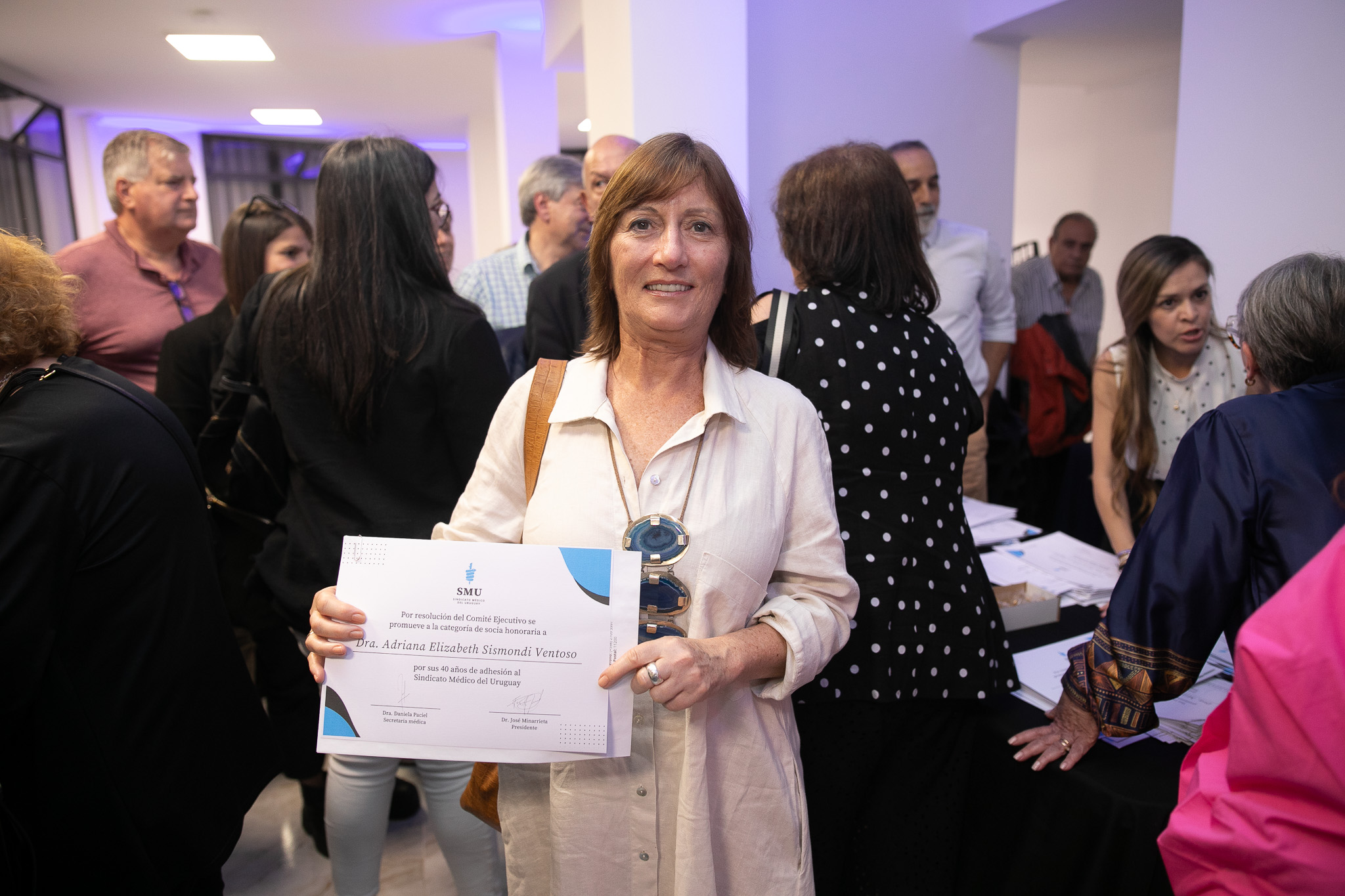 Se sumó a esta celebración la entrega de los premios de la Revista Médica del Uruguay “Dra. Gloria Ruocco” y se les hizo un reconocimiento a las socias y socios honorarios que cumplieron 40 años de afiliación.