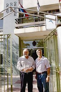 El Presidente del SMU, Dr. Alfredo Toledo, acompañado del Dr. Álvaro Ginzo, miembro del Comité Ejecutivo del SMU, en las puertas del Centro Médico Deportivo.
