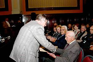 El Dr. Antonio L. Turnes haciendo entrega de un reconocimiento al Dr. Ciro Peluffo.