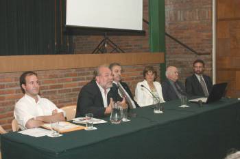 La mesa que presidió el acto estuvo integrada por el presidente del SMU, Dr. Alfredo Toledo, el decano de la Facultad de Medicina, Dr. Felipe Schelotto, el representante de OMS/OPS, Dr. Fernando Dora, el vicepresidente del SMU, Dr. Julio Trostchansky, el sociólogo César Aguiar, director de Equipos Mori y los miembros de la Comisión de Hemostasis, Trombosis y Salud Cardiovascular del SMU, Dres. Ana María Otero y Pablo Asadurián.
