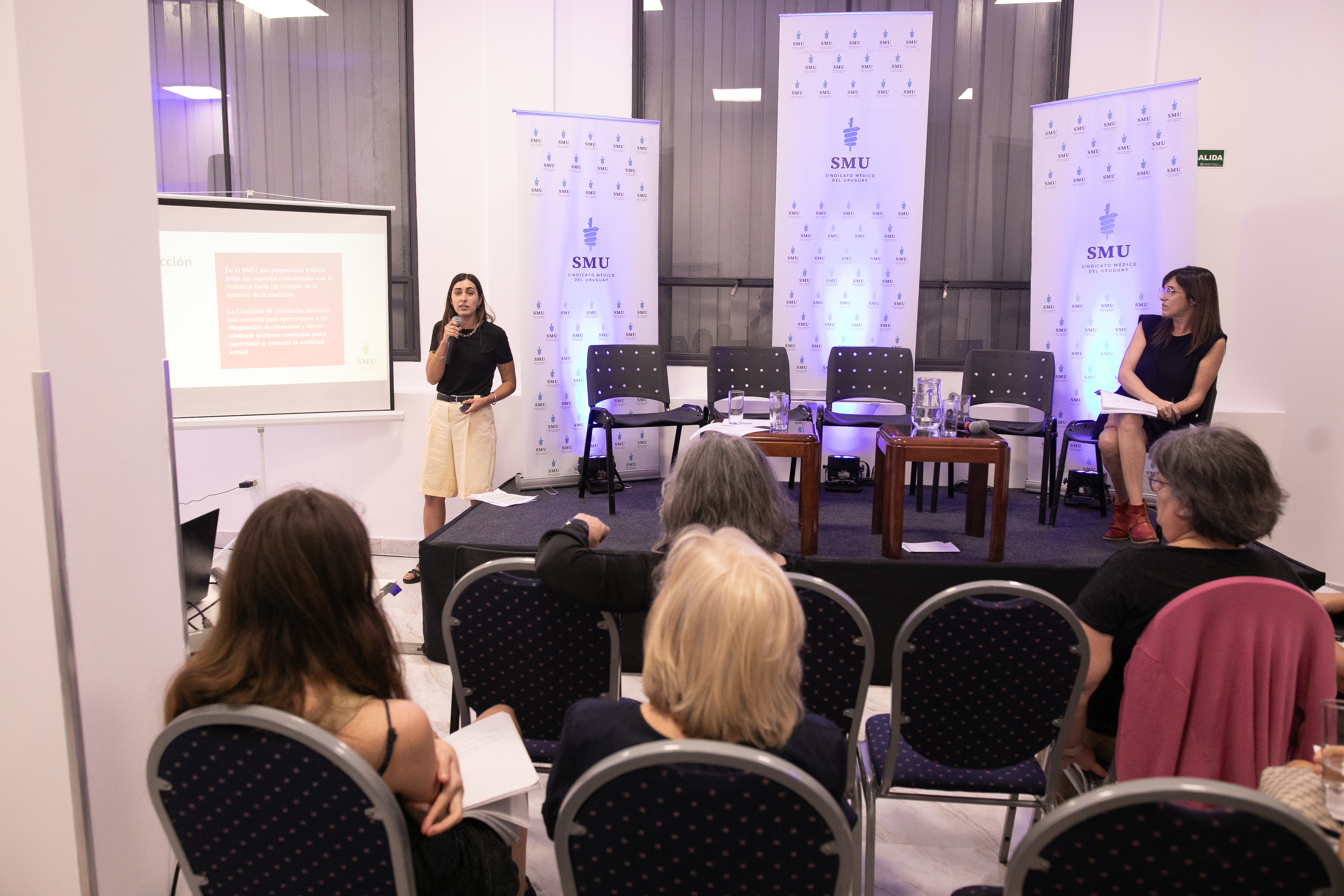 Se trató de una instancia que reunió a referentes del Ministerio de Salud Pública, la Universidad de la República y profesionales del propio sindicato médico para analizar las desigualdades que atraviesan a las médicas en el ejercicio profesional y presentar herramientas y acciones necesarias para enfrentarla institucional y culturalmente.